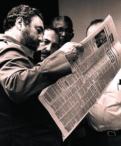 Recuerdo en una visita a “Granma”, a la oficina del director, un sillón, creo de color blanco, que al parecer usaba Fidel. Entiendo que él, muchas veces acompañado de Celia Sánchez, su leal colaboradora desde la guerrilla, iba al periódico a ver contenidos, las portadas, estaba muy cerca de la labor de los periodistas. ¿Qué es Fidel en la historia de estos 60 años de Granma?