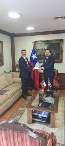 Los documentos fueron presentados por el representante diplomático al director general de ceremonial del Ministerio de Relaciones Exteriores de Chile, Christian Hodges-Nugent Domac.